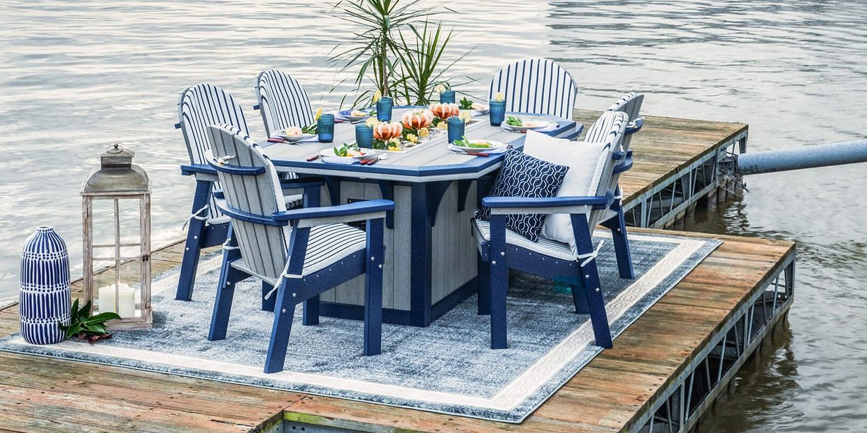 We carry a complete line of Poly, Teak and aluminum furniture.